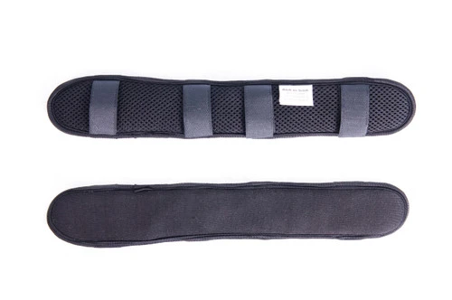 Back on Track Poll Cover for horses uses Back on Track’s amazing ceramic fiber therapy to bring pain relief to your horse. This cushioned poll guard attaches to your horse’s halter or bridle with four Velcro straps to stay on securely. The material is a polypropylene blend that has ceramic particles fused permanently into the material. This creates thermal warmth therapy by reflecting your horse’s body heat back as healing long wave infrared radiation. The good kind of radiation that increases circulation and reduces inflammation and muscle tension.