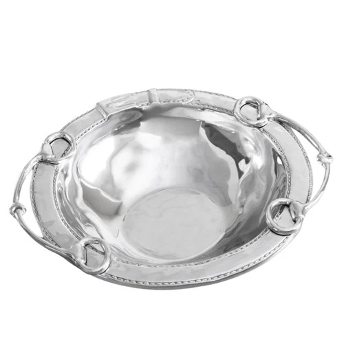 Beatriz Ball Equestrian Large Bowl is perfect for serving salads, chips, or side dishes or creating a gorgeous centerpiece. Traditional snaffle bit handles on the sides are graceful and quintessentially equestrian. Shiny silver color bowl is an aluminum alloy that won’t tarnish, making it as practical as it is pretty. Beatriz Ball’s aluminum alloy is FDA approved and freezer friendly.