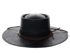 Toyo Straw Gaucho Hat is part of the Biltmore Vintage Couture collection at Dorfman Hat Co. The flattering style in black is a great choice to accessorize your outfit with flair. It’s also practical, too, with its face shading wide brim and UPF50+ sun protection. The gaucho cowboy hat has a deluxe sweatband that comfortably adjusts the fit. A leather chin cord with feather accent helps the Toyo Straw Gaucho Hat stay put when a summer breeze kicks up.
