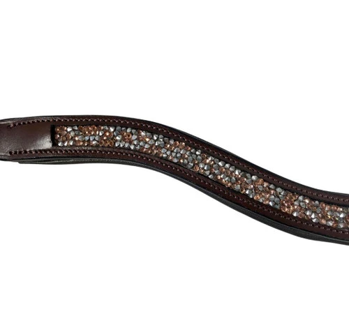 Black Oak Stormy Rose Curved Browband has a sparkling mosaic rose crystal insert for distinctive luxury Style. The brown or black leather wide browband for English and dressage bridles is an elegant upgrade from a plain browband. The leather has a nice feel and the crystals add sparkle and flair.