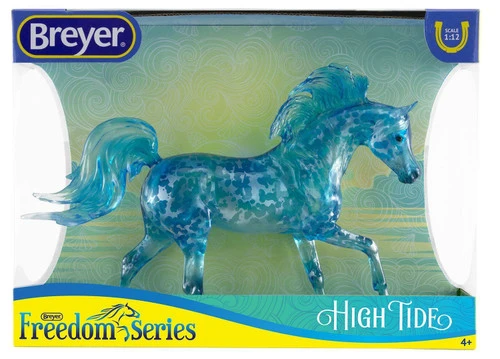 Breyer Freedom Series High Tide is a dreamy, breezy, shimmery Breyer model horse with unique color and hand painted design. High Tide is a clear acrylic model with silvery blue dappled coloring that evokes splashes of water in a foamy sea.