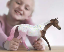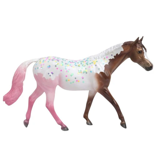 Breyer Neapolitan has a chocolatey brown coat in front that transitions to creamy vanilla, then strawberry. Add whipped cream and colorful sprinkles on top, and you have the sweetest mare ever! The Neapolitan Decorator Horse from the Freedom Series has a subtle pearl finish for extra shine. This is a festive Breyer horse that makes an ideal birthday gift.
