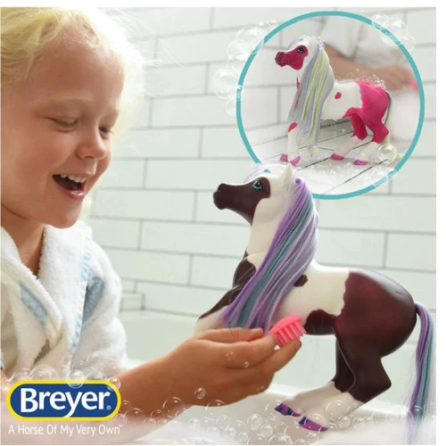 Dip the Marina Color Change Mer-Pony in warm water and watch as her markings, mane, tail, and hooves change color. Magical little mer-pony comes with the removable blanket, crown, atomizer bottlem and hairbrush. This is an extra fun Breyer horse toy for the littlest pony enthusiasts!