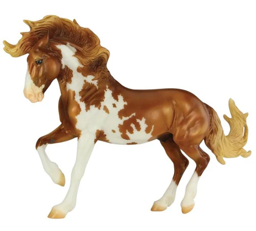 New Breyer Mojave Mustang is an impressive model with a proud and powerful appearance and stunning color. The mustang stallion has a wild mane and tail, rich overo pinto coat, and one blue eye and one brown eye, a trait called Complete Heterochromia.