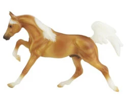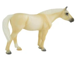 The Breyer Stablemates Pintos and Palominos Set features four beautiful Palomino horses with authentic coat colors and patterns. The Stablemates 1:32 scale horses are a fun size for playing at home or taking on the road. There is a Palomino with light coat, a dark coat, a chocolate paint, and golden paint. The small toy horses are boxed for gift giving.