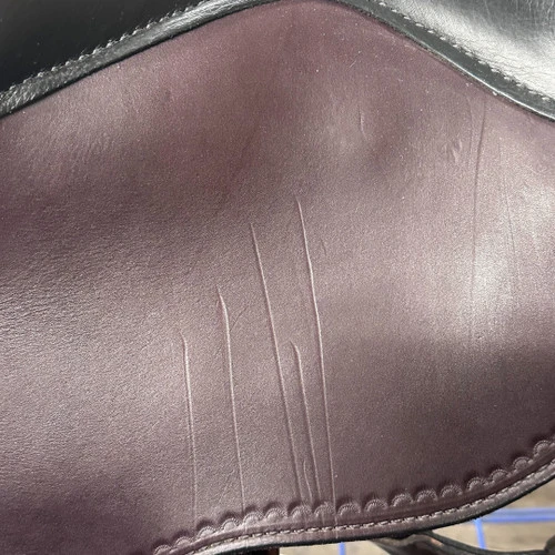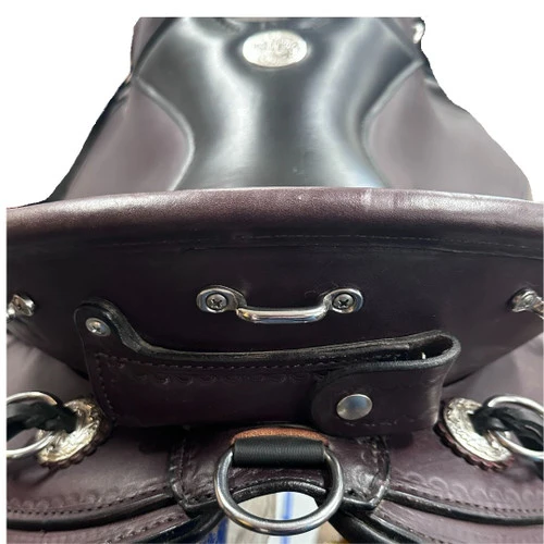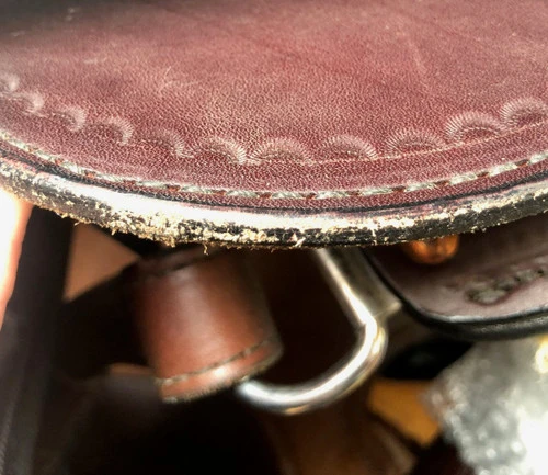 This saddle is designated “used” by Circle Y. The most notable issue is the presence of scratches on the right seat jockey. Think of it as a chance to tell your friends about the time you and your horse fought off a mountain lion. The leather billet keeper on the right side is missing. There are scuffs and other blemishes, some of which may not be visible in photos.
