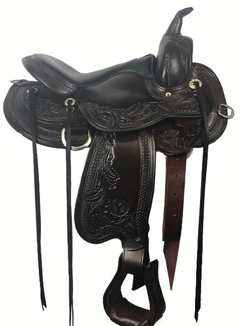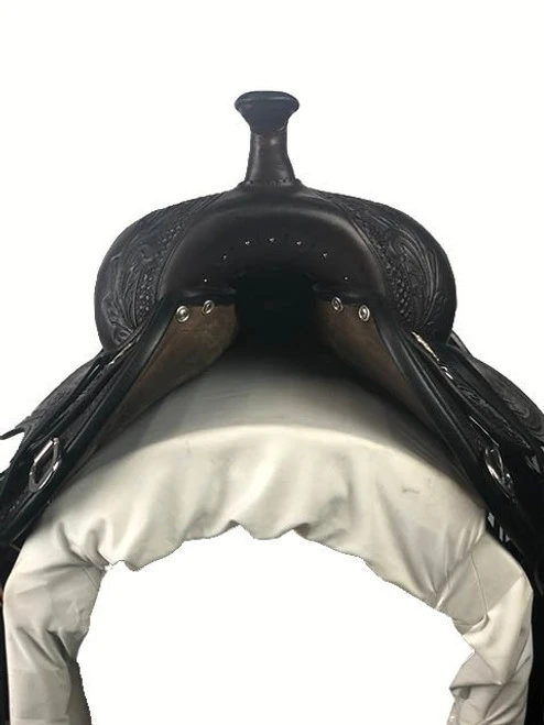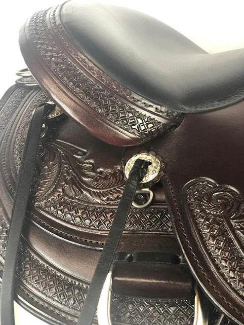Endorsed by Julie Goodnight, the noted clinician and trainer, The Circle Y Wind River Flex2 Saddle features the innovative technology you want in a trail saddle with the beautiful craftsmanship you’ve come to expect from Circle Y Saddles. Designed with the comfort of both horse and rider in mind, this fantastic Trail Saddle requires almost no break in time and promotes balanced riding. Not only that, it is drop dead gorgeous! The lavish hand tooling, black seat, and walnut leather add up to a luxury look that suits the high end performance.