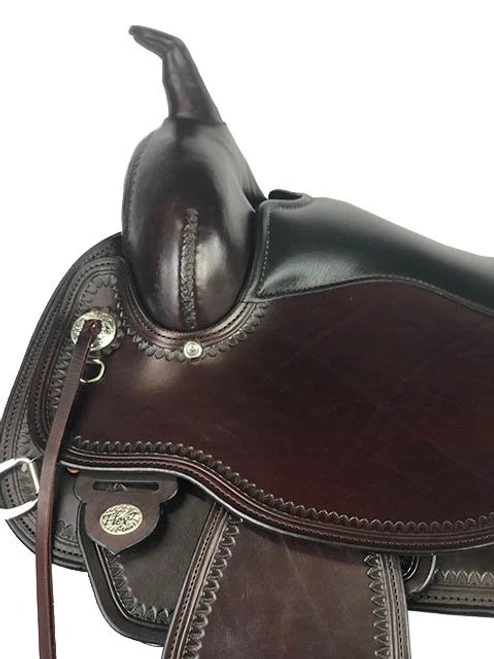 Circle Y Omaha 1554 Flex2 saddle is one of Mary’s best selling Western saddles! The Omaha’s Softee leather gives it a ready-to-ride feel, the Flex2 tree conforms to your horse’s back, and it’s very light weight – just 26 pounds! Many of our customers tell us they can no longer lift their older saddle due to shoulder or back issues so they’re thrilled with how easy it is to saddle up with the Omaha saddle! Handsome Walnut leather with border tooling makes this Circle Y saddle as handsome as can be.