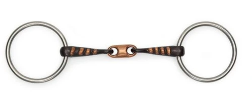 Copper Lozenge Sweet Iron Raised Ribs Loose Ring Bit from Shires Equestrian is a training bit with useful features for many horses. The sweet iron and copper combination mouthpiece provides a warm feel and pleasant taste for the horse. The raised copper ribs foster increase salivation for a wet, comfortable mouth. Especially good bit for a dry mouthed horse. The loose ring cheeks and the lozenge encourage lightness and help prevent the horse from leaning on the bit. This Shires loose ring training bit is eligible for . Click now for details!