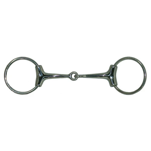 The Loose Ring Eggbutt Snaffle is a single jointed snaffle bit with loose rings inside a sleeve at the ends of the mouthpiece. This loose ring/eggbutt hybrid style limits the amount of movement the bit has in the horse’s mouth. The effect is similar to using bit keepers on a full cheek bit. The other benefit of the Loose Ring Eggbutt Snaffle is it won’t pinch the horse’s lips.