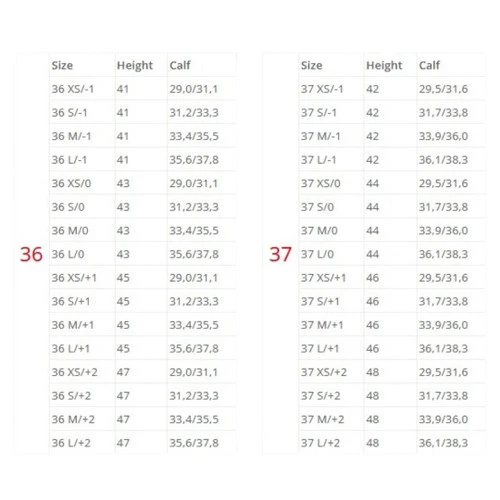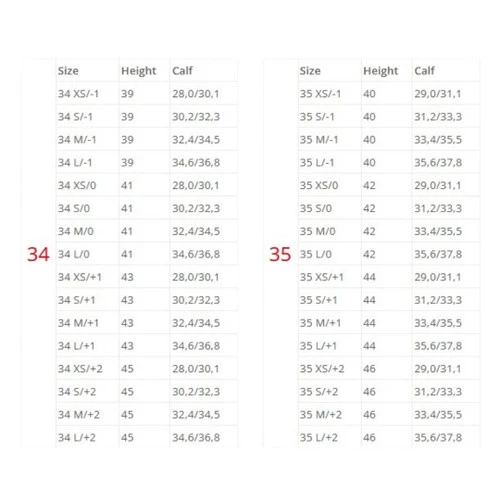 - Calf: XS – Slim, S – Slim, M – Medium, L – Large
