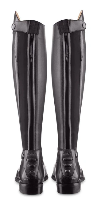 Each pair of Ego7 boots comes with two sets of insoles to create your best fit. There’s a contoured elastic panel alongside the zipper to allow a snug but comfortable fit. Close, tapered fit at the ankle for a modern, custom look. Super tough full length zipper and sturdy snaps are the same ones used in high-end Tucci boots. Thoughtful features abound, like the leather tongue to protect your heel and sock from catching on the zipper. The spur rest has multiple levels so you can place your spurs where you want them. Traditional field boot style has a stitched toe cap and leather laces. EGO 7 Orion Boots for Men and Women are a unisex style in European sizing. Sleek, elegant, tough, reasonably priced, technologically advanced – the EGO7 delivers a wide range of wonderful!