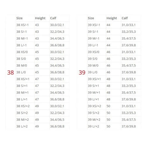 - Calf: XS – Extra Slim, S – Slim, M – Medium
