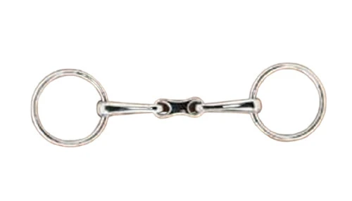 Stainless Steel French Link Loose Ring Snaffle Bit. Bit mouth measures13 mm while the cheeks are 2 7/8″ rings. Available in sizes: 5, 5.5 . Stainless steel is easy to clean and maintain for long lasting use. Look over the selection of bit polishing pastes and creams at Mary’s to keep your new English bit looking shiny!