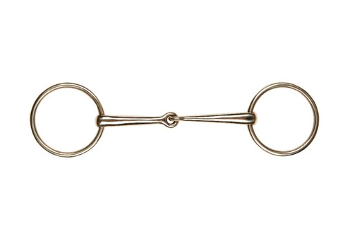 Albacon loose ring snaffle with solid jointed mouth. 18 mm mouth, 65 mm cheek rings. Made of a high-copper content form of German Silver to stimulate salivation and prevent dry mouth. Still has the look of regular German Silver.
