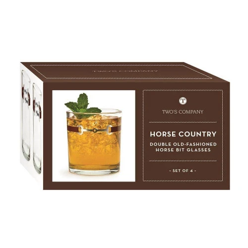 Horse Country Double Old Fashioned Glasses in a Set of 4 are cocktail glass featuring a horse bit accent that gives your favorite drink a signature touch. This set of four Double Old Fashioned glasses come in a gift box, ready for any special occasion.