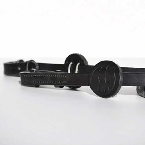 In Horse We Trust adjustable reins have Sensi’T stoppers that allow a softer contact plus Fixi’T stoppers that keep hands in place on the reins. Both types of hand stops can be moved by the millimeter to give you the exact configuration you want. The hand stops stay in place and are very comfortable. Sensi’T stoppers are recommended for flat work while the Fixi’T stoppers are useful for jumping and more challenging work. In addition, there are two Mark stoppers on each side of the Reins Adjust. These stoppers are easy to move and are helpful for giving the rider visual confirmation of symmetry, especially when doing bending exercises.