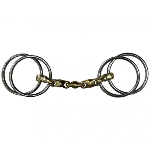 Jump’in Waterford Wilson bit has a flexible, multi-jointed mouthpiece and Wilson style ring cheeks. The reins are attached to the rings connected to the mouthpiece. The bridle cheeks attach to the two free-floating rings. Reins can also be attached to both rings for a milder effect.