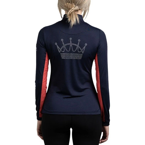 Kastel Denmark Crystal Crown Sun Shirt features the signature Kastel crown logo in gorgeous crystals on the back. The darker colors are great for flattering figures and hiding a bit of barn dirt! The silky technical fabric is equipped with mesh sleeves for extra ventilation. Versatile long sleeve, quarter zip sports top is perfect for riding, hiking, running, tennis, and other outdoor sports.