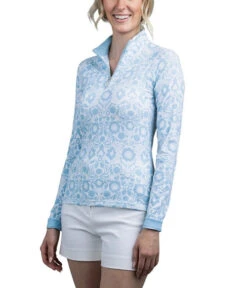Choose a super soft and silky UPF30+ Kastel Denmark Signature Print Raglan Sleeve Sun Shirt for a more comfortable ride! Women’s raglan long sleeve sun shirt from Kastel Denmark comes in stylish signature prints to upgrade and refresh your wardrobe. Quarter zip equestrian training shirts not only look chic, they help protect your skin from damaging ultraviolet rays.