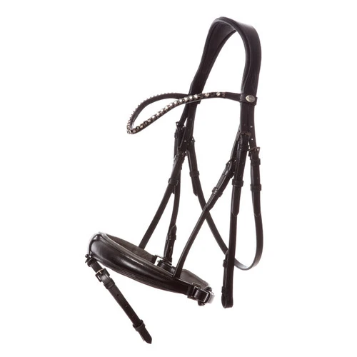The Kavalkade Grey Snaffle Bridle has exceptional style with the grey trim against black and sparkling grey stone browband. What a beauty! Kavalkade snaffle dressage bridle has a padded wide raised crank noseband and curved crystal browband. The Grey Snaffle Bridle is graceful and balanced to flatter and be comfortable for your horse.