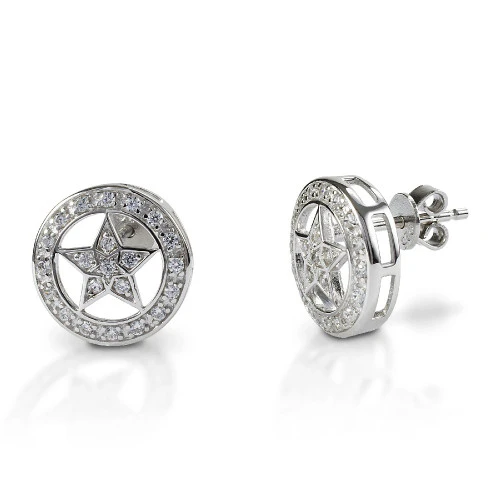 Kelly Herd Star Earrings are Western star post earrings that match the Kelly Herd Star Pendant Necklace, also here at Mary’s. The star on each earring is the same size as the pendant. What a beautiful set this would make! The star is set in a wide circle and there’s a smaller star inside the star. Clear cubic zirconia stones add sparkle and shine.