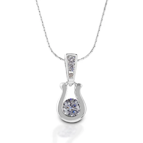 Sterling silver Kelly Herd Stylized Horseshoe Pendant has a single CZ stone on the dangle as well as the smaller CZ accents at the top. Equestrian jewelry comes with a lovely adjustable sterling silver chain.