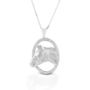 Lovely Stylized Horseshoe Pendant from Kelly Herd Jewelry has a unique design with beautiful glittering Cubic Zirconia accents. The horseshoes also resemble Western stirrups or fancy scrolls, so this pretty necklace would make anyone happy.