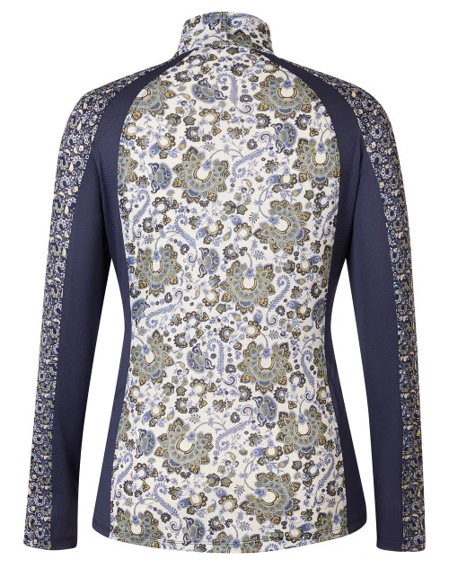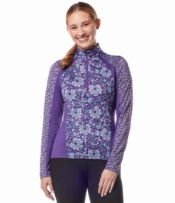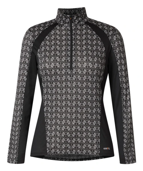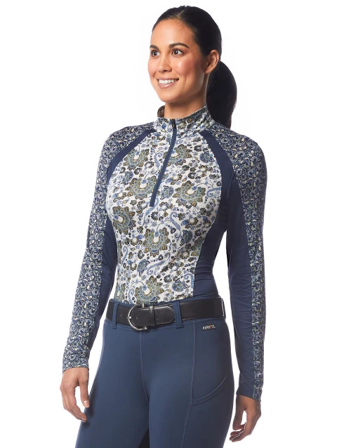 The Always Cool Ice Fil Long Sleeve Shirt in Prints lets you cover up or ventilate with the 10-inch zipper. Active equestrians will appreciate the flattering gently contoured fit and coverage plus all-day comfort. Kerrits Ice Fil shirts are easy to tuck into breeches and jeans and still look great worn loose. A stock tie and low profile back pockets are convenient finishing touches on the new Kerrits Always Cool Ice Fil Long Sleeve Shirt.