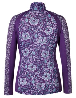 Women’s Kerrits Always Cool Ice Fil Long Sleeve Shirt in beautiful new prints has all the cool, stretchy comfort a rider could want. The combination of Kerrits equestrian prints plus slimming solid panels is sporty as well as flattering. The Ice Fil Lite fabric cools your skin by up to five degrees on hot, muggy days and provides important UPF+30 sun protection. Breezy and lightweight riding shirt is wicking, quick drying, and highly breathable.