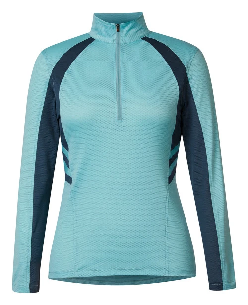 Women’s Kerrits Always Cool Ice Fil Long Sleeve Shirt in solid colors has a crisp, sporty look with stripe accents and flattering color block. The Ice Fil Lite fabric goes to work when you do, cooling your skin by up to five degrees on hot, muggy days and provides UPF+30 sun protection. Super cool and lightweight summer riding shirt is wicking, quick drying, and very stretchy.