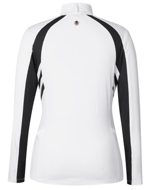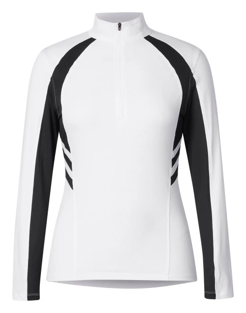 The Always Cool Ice Fil Long Sleeve Shirt from Kerrits lets you cover up or ventilate with the 10-inch zipper. Hard working equestrians will appreciate the flattering contoured fit and coverage plus all-day comfort. Kerrits Ice Fil shirts are easy to tuck into breeches and jeans and still look great worn loose. A convenient stock tie and low profile back pockets round out the details.
