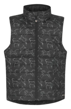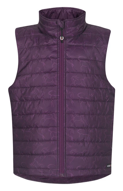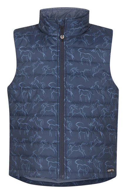 Lightweight Kerrits Kids Winter Whinnies Quilted Vest will keep your young rider warm and happy and looking sharp on cold day. The lovely Winter Whinnies print and great colors turn a key winter riding wardrobe piece into a fashion statement. Girls quilted insulated equestrian vest provides important core warmth as it adds the finishing touch to a riding outfit.