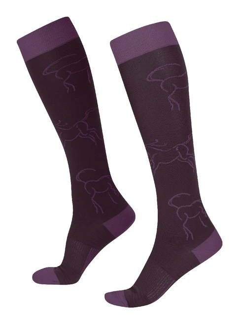 Kids winter riding socks feature a Kerrits exclusive Winter Whinnies pattern of playful horses. Soft and stretchy knee socks have a non-binding cuff, reinforced heel and toe, and are thin enough to wear with favorite boots. Kerrits Kids Winter Whinnies Wool Socks are tough enough for a busy barn life. Choose from seasonal colors that coordinate with Kerrits breeches and tops. Kids Winter Whinnies Wool Socks are one size to fit most young riders.