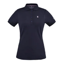 Kingsland Bridgette Show Shirt has delicate scalloped edging at the collar, placket, and cuffs. The quarter placket snaps are beautiful KL buttons with tiny crystals. There is a white KL embroidery at the front. The Kingsland Bridgette Show Shirt has a sophisticated, upscale look plus athletic performance features that make it a welcome addition to your summer competition wardrobe.