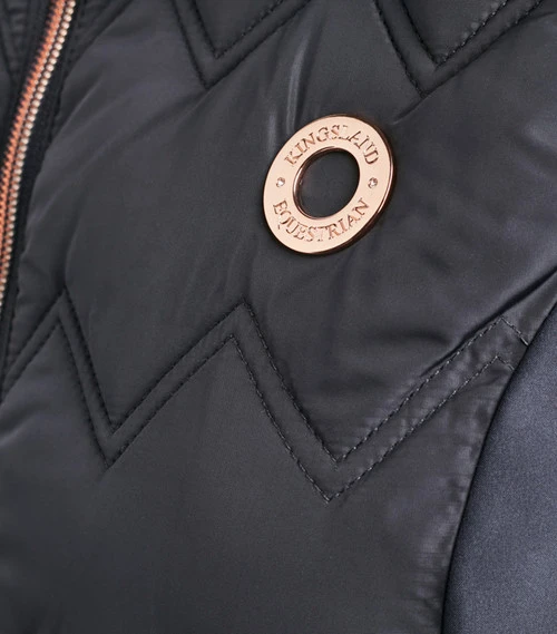 The Sia Insulated Vest layers perfectly with your sun shirts, training shirts, and light sweaters. Ladies padded quilt vest is practical, sporty, and has elegant Kingsland details like the KL circle emblem at the chest and tasteful hardware. The elasticated binding at the armholes and a two-way front zipper ensure saddle comfort. Great colors and curvy lines are designed to flatter! Kingsland Sia Body Warmer Quilted Vest comes in beautiful Coffee with Silver, Navy with Rose Gold, and Hot Chocolate with Rose Gold.