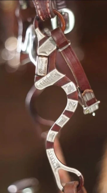 Legacy Pro Bit from Mikmar has antique bronze shanks decorated with German Silver accents. The 6″ swivel shanks are somewhat straight and offer good lateral feel and independent shoulder lift. This bit can work for competition, ranch, roping, trail, and showing. The Legacy Pro Bit can help a rider correct horses that lean, pull, root, or bolt. Good training tool to work on headset, flexion, and balance, and helping transfer weight to the hind quarters.
