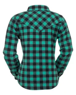 Women’s casual Western shirt is substantial enough to be a jacket and is definitely intended to wear untucked. The Outback Big Shirt features a button front placket and single point Western yokes at back and shoulders to give it a timeless, traditional look. Two welted pockets are at the ready to warm your cold hands. The buffalo plaid checked pattern in red or turquoise has classic outdoorsy style. Cuddle up this autumn and winter with the wonderful Outback Trading Company Big Shirt!