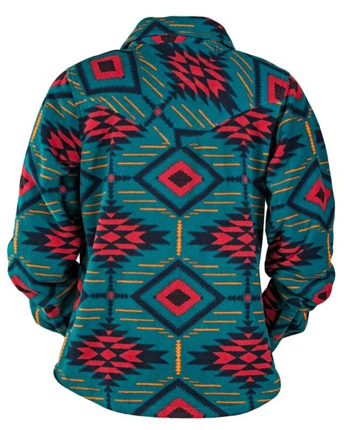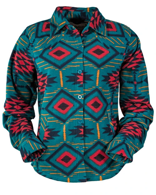 Women’s Eleanor Big Shirt from Outback Trading Company has soft, warm fleece to get you through winter days in style. Cold weather Eleanor Big Shirt has Western yokes and a Southwestern pattern in cool blue or brilliant teal shades. This is the perfect shirt for wearing alone or over a base layer or tee. Wear it to ride, camp, shop, or to the movies. It will look pretty and feel great everywhere you go.