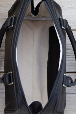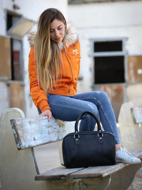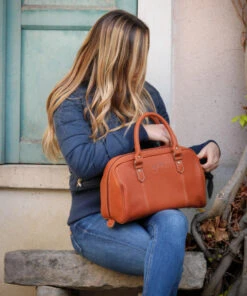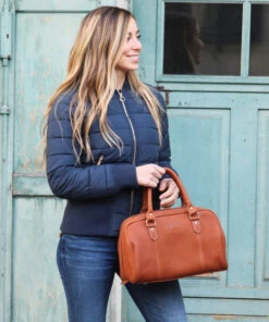The Little Étretat Bag is a perfectly sized purse with plenty of room for necessities. It has two rolled leather handles for carrying comfortably by hand. It zips open around 3 sides so it’s easy to retrieve items. The bottom of the bag has metal feet to protect it from surfaces. Pénélope Little Étretat Bag has a wonderful feel with soft, supple fine leather in Brandy/Cognac or Black.