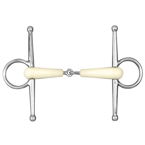 Happy Mouth Jointed Full Cheek Snaffle Bit. Made using an apple-scented, space-age polymer, Happy Mouth bits encourage ponies to accept the bit while providing a gentler bit for a happier pony. All pony-size Happy Mouth bits have proportional cheeks and shanks. Size 4.5″.