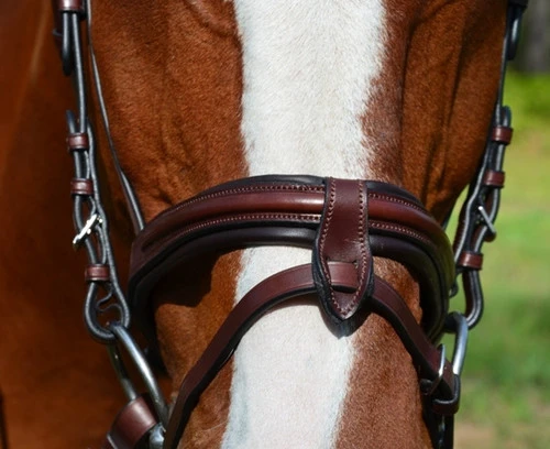 Red Barn Burghley Flash Bridle is a jumping and eventing bridle with a removable integrated flash strap, allowing it to convert to a plain cavesson noseband. Handsome brown leather English horse bridle features a threaded, softly padded crown for comfort at the poll. The 7/8″ round raised browband matches the 1 1/4″ nose band, with soft brown padding, again, with the horse’s comfort in mind.