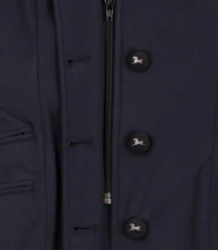 RJ Classics Girls Shore 3-Button Coat is a show ring winner for competitive young riders. Fitted and elegant RJ Classics 3-button Shore Coat for kids is high performance show apparel at its best. This lightweight and stretchy hunt coat offers maximum breathability and comfort with its specially woven softshell fabric. The black or navy colors are ideal for any show ring.