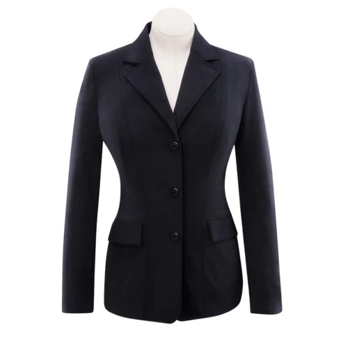 Flexible and unconstructed, the Monterey has no shoulder pads or lining to impede mobility. It is beautifully finished inside and out! The jacket is carefully tailored, to have a feminine, fitted silhouette in a shorter, current design. Nice versatile coat for riders who cross over from hunter to jumper arena or have a busy show schedule. The high-end fabric is machine washable and wrinkle-free for frequent use and travel. The Monterey is moisture wicking and has inherent UV protection, equal to SPF 50 sunscreen.