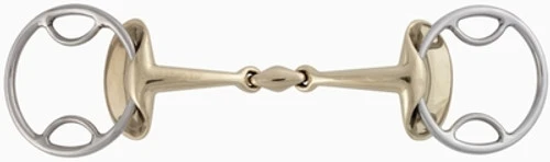 With Stubben’s innovative Golden Wing cheek plates, the Double Jointed Gag Bit features round, stainless steel rings and a double jointed, Sweet Copper mouth that increases salivation for better bit acceptance while evenly distributing pressure over the tongue. The unique Stubben “Wing” design prevents the bit rings from being pulled through your horse’s mouth and protects the sides of your horse’s mouth when the rider applies direct rein pressure. Gentle and effective, the Stubben Golden Wing Double Gag bit is a great choice for inexperienced horses or riders. Available at Mary’s in sizes 4.5, 5, 5.25, 5.75.