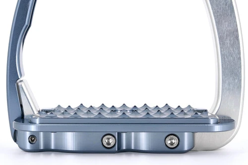Made in Italy, the patented Tech Stirrups are made from aluminum and fitted with stainless blocked screws. The treads are treated with nano-ceramic coating, while the rings are treated with a 20 micron anodization to preserve their beauty. Strategically placed stirrup leather eyes provide rider comfort and assist in retrieving lost stirrups. Ride with safety and confidence with the Tech Venice EVO Stirrups.