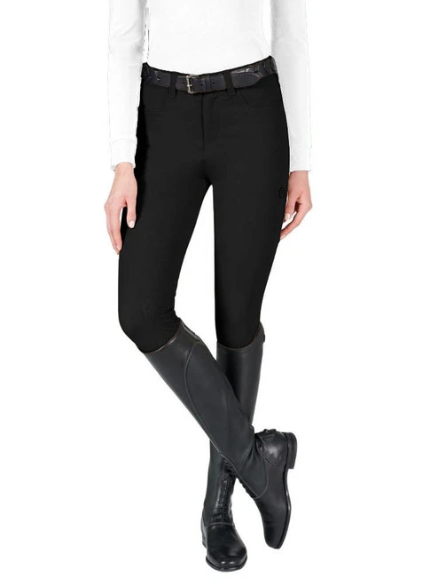 Women’s Vestrum Syracuse Breeches with silicone print grip knee patches are perfect for riding competition and schooling. The Syracuse Breeches have a classic euroseat and medium rise. The silky smooth fabric has excellent stretch with good structure for figure flattery.