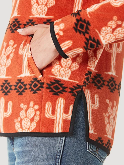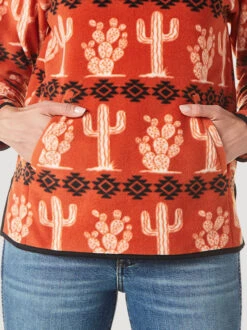 Wrangler Cactus Quarter Zip Fleece Pullover is super lightweight, warm, and ideal for layering. The bold styling includes a cactus print in white with Southwestern geo print in black. The Cinnabar color on polar fleece is fresh and fun for multi-season wear.